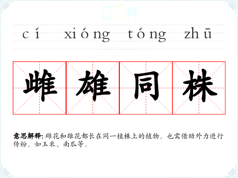 雌雄同株的分字解释