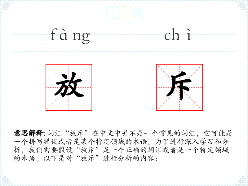 由于“放斥”不是一个常见的词汇,我对它的理解主要基于假设和推测。在语言学习和表达中,了解特定领域的术语和词汇是非常重要的,因为它们可能在特定语境下有特定的含义和用法。