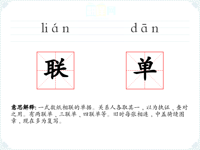 联单的分字解释