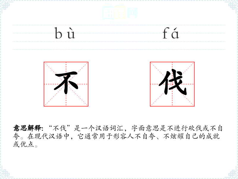 - 文学语境:在文学作品中,“不伐”常用来形容人物谦虚、低调的品质,如“他虽有卓越的成就,但从不伐其功”。