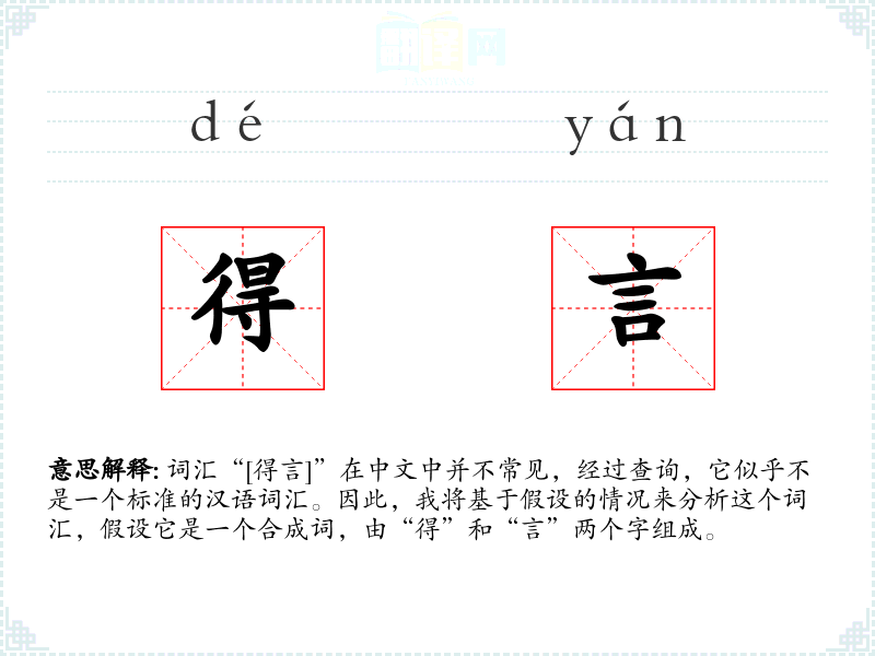 词汇“[得言]”在中文中并不常见,经过查询,它似乎不是一个标准的汉语词汇。因此,我将基于假设的情况来分析这个词汇,假设它是一个合成词,由“得”和“言”两个字组成。