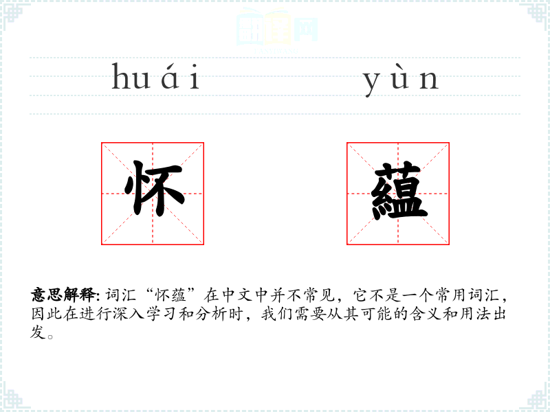 词汇“怀蕴”在中文中并不常见,它不是一个常用词汇,因此在进行深入学习和分析时,我们需要从其可能的含义和用法出发。