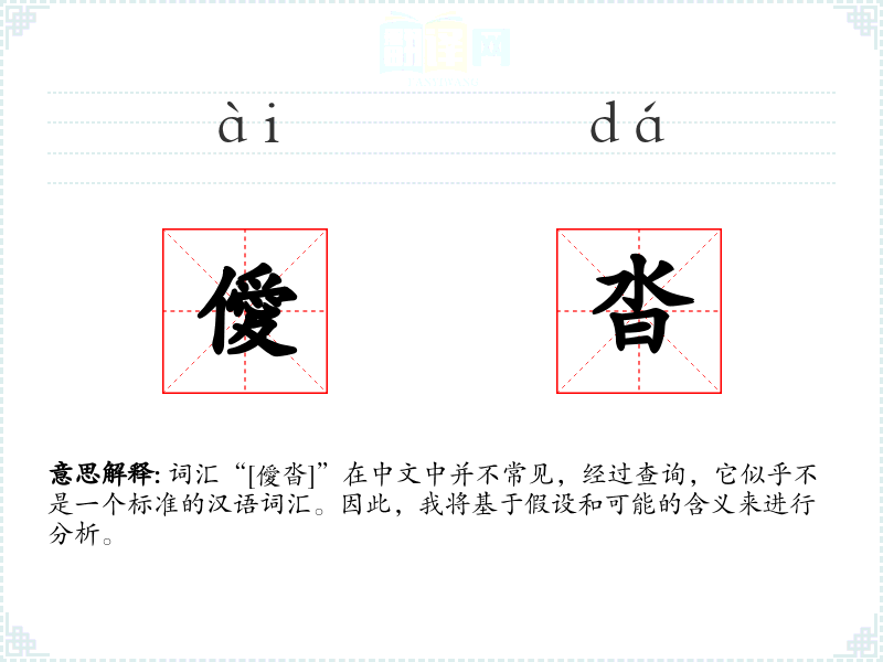 词汇“[僾沓]”在中文中并不常见,经过查询,它似乎不是一个标准的汉语词汇。因此,我将基于假设和可能的含义来进行分析。