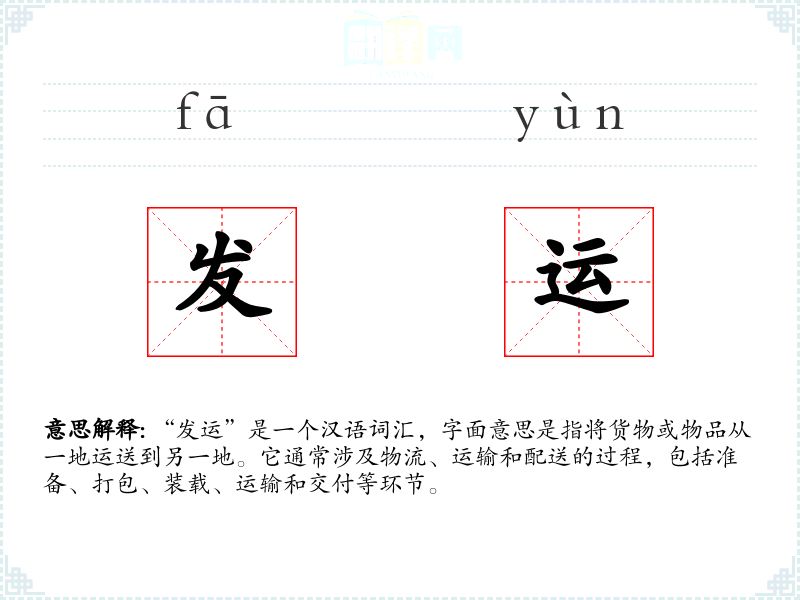 “发运”一词由“发”和“运”两个字组成。在古代汉语中,“发”有出发、启动的意思,“运”则指移动、运输。随着物流行业的发展,这个词逐渐成为描述货物运输的专业术语。