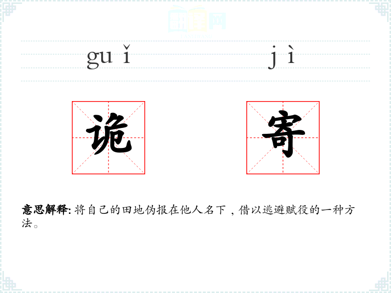 将自己的田地伪报在他人名下﹐借以逃避赋役的一种方法。
