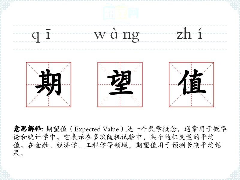 期望值(Expected Value)是一个数学概念,通常用于概率论和统计学中。它表示在多次随机试验中,某个随机变量的平均值。在金融、经济学、工程学等领域,期望值用于预测长期平均结果。