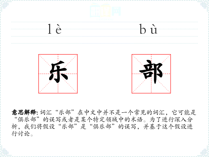 "乐部"的意思解释、乐部是什么意思由翻译网汉语词典查词提供。
