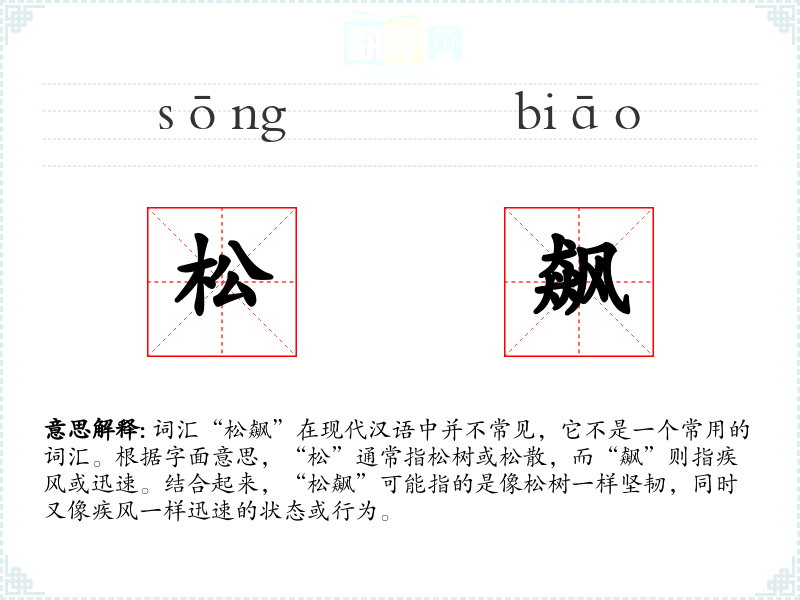 “松飙”这个词虽然不常见,但它提供了一种形象的表达方式,可以用来形容那些既坚韧又迅速的特质或行为。在语言学习和表达中,适当地使用这样的词汇可以增加语言的丰富性和表现力。