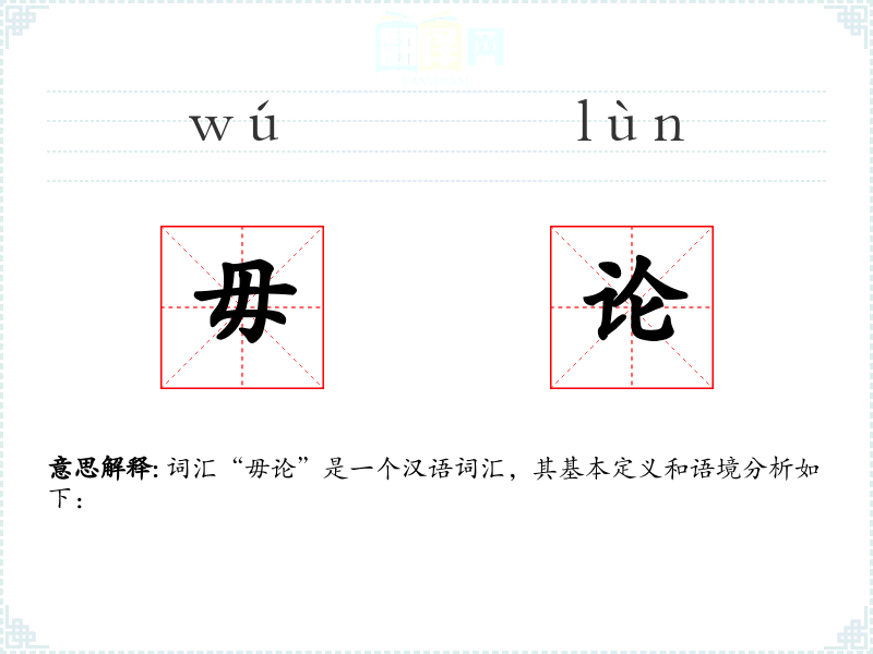 词汇“毋论”是一个汉语词汇,其基本定义和语境分析如下:
