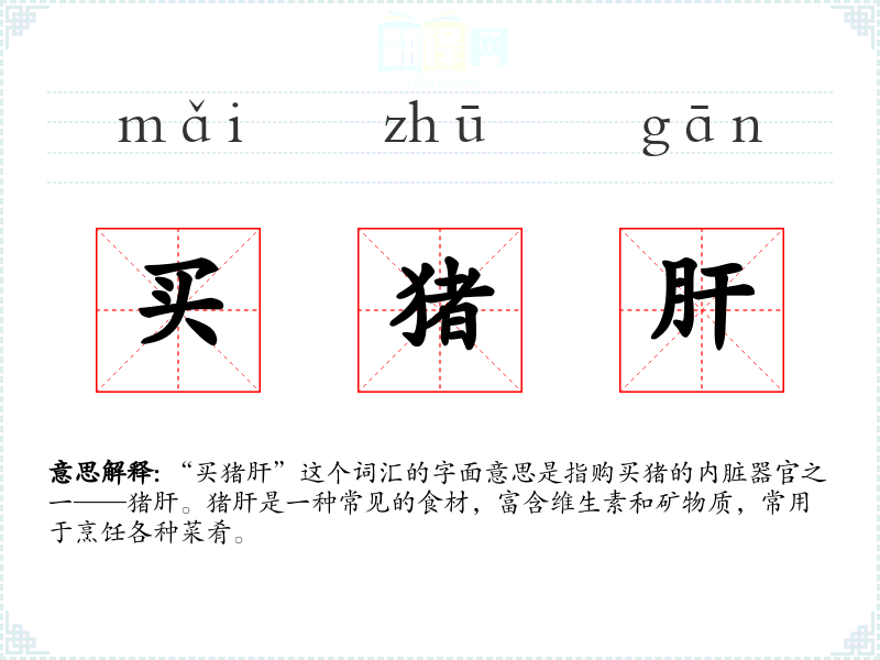 “买猪肝”这个词汇的字面意思是指购买猪的内脏器官之一——猪肝。猪肝是一种常见的食材,富含维生素和矿物质,常用于烹饪各种菜肴。
