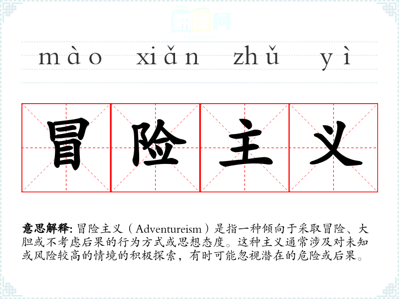 冒险主义往往激发人们对未知的好奇和对挑战的渴望,但也可能引起对潜在风险的担忧。这种词汇可能让人联想到勇敢的探险家、创新的企业家或不畏艰难的战士。