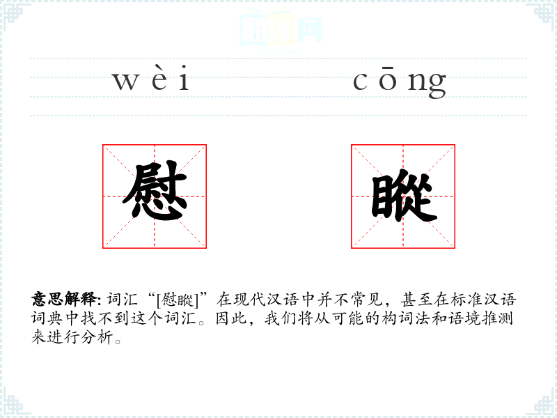 词汇“[慰瞛]”在现代汉语中并不常见,甚至在标准汉语词典中找不到这个词汇。因此,我们将从可能的构词法和语境推测来进行分析。