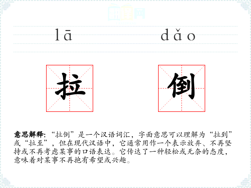 "拉倒"的意思解释、拉倒是什么意思由翻译网汉语词典查词提供。