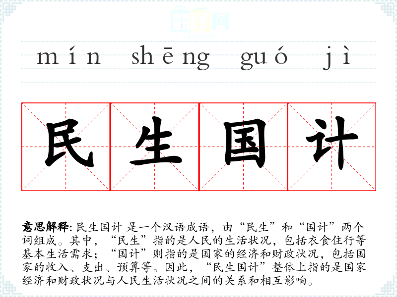 民生国计 是一个汉语成语,由“民生”和“国计”两个词组成。其中,“民生”指的是人民的生活状况,包括衣食住行等基本生活需求;“国计”则指的是国家的经济和财政状况,包括国家的收入、支出、预算等。因此,“民生国计”整体上指的是国家经济和财政状况与人民生活状况之间的关系和相互影响。