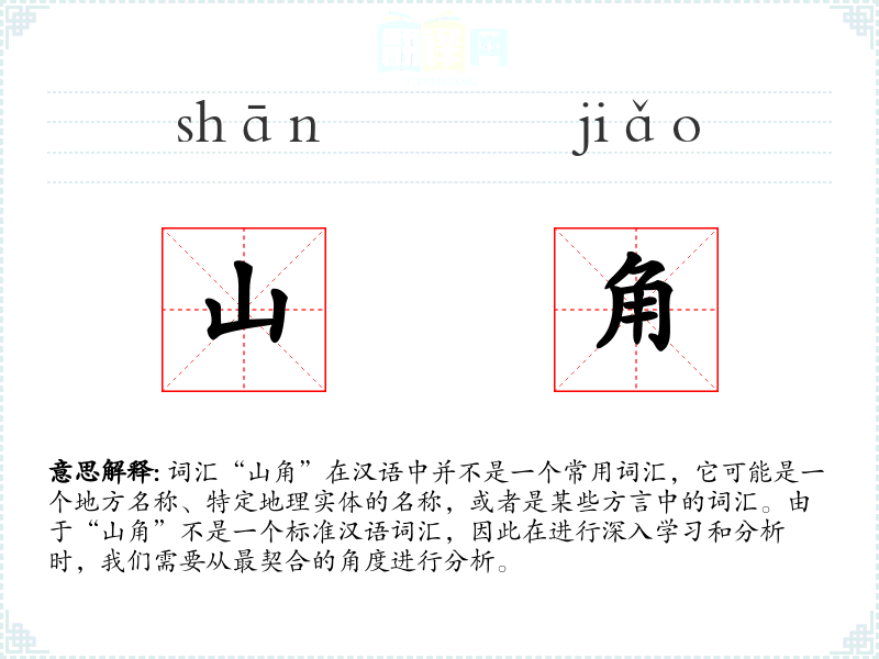 词汇“山角”在汉语中并不是一个常用词汇,它可能是一个地方名称、特定地理实体的名称,或者是某些方言中的词汇。由于“山角”不是一个标准汉语词汇,因此在进行深入学*和分析时,我们需要从最契合的角度进行分析。