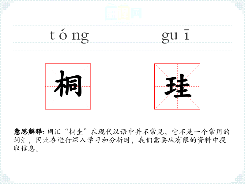 词汇“桐圭”在现代汉语中并不常见,它不是一个常用的词汇,因此在进行深入学*和分析时,我们需要从有限的资料中提取信息。