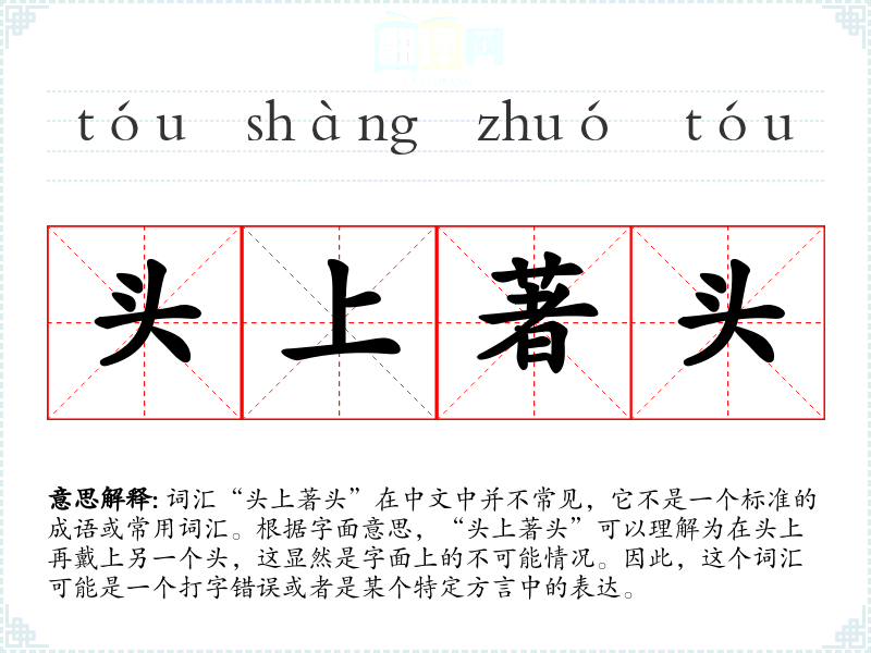 由于“头上著头”不是一个标准词汇,我们在学习和使用中文时应避免使用不明确的表达。正确的词汇和表达对于语言学习和沟通至关重要。