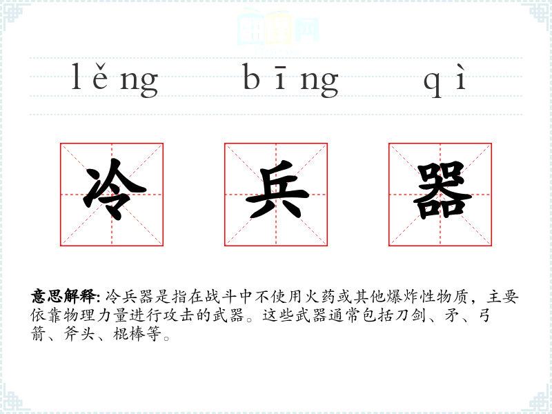 "冷兵器"的意思解释、冷兵器是什么意思由翻译网汉语词典查词提供。