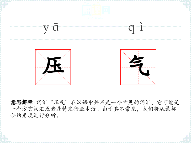词汇“压气”在汉语中并不是一个常见的词汇,它可能是一个方言词汇或者是特定行业术语。由于其不常见,我们将从最契合的角度进行分析。