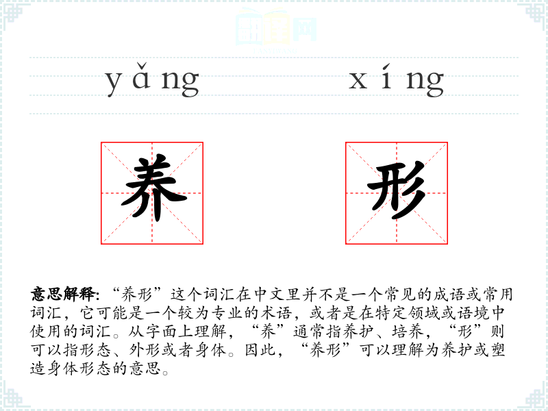 "养形"的意思解释、养形是什么意思由翻译网汉语词典查词提供。
