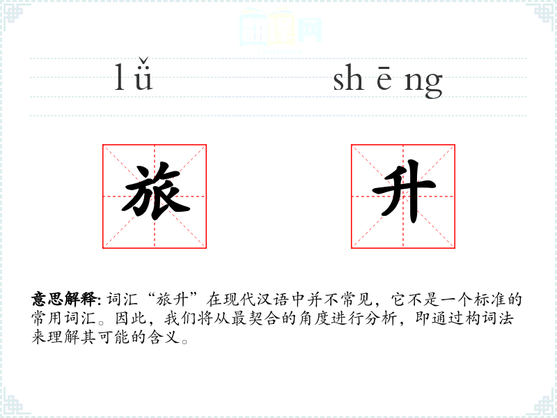词汇“旅升”在现代汉语中并不常见,它不是一个标准的常用词汇。因此,我们将从最契合的角度进行分析,即通过构词法来理解其可能的含义。