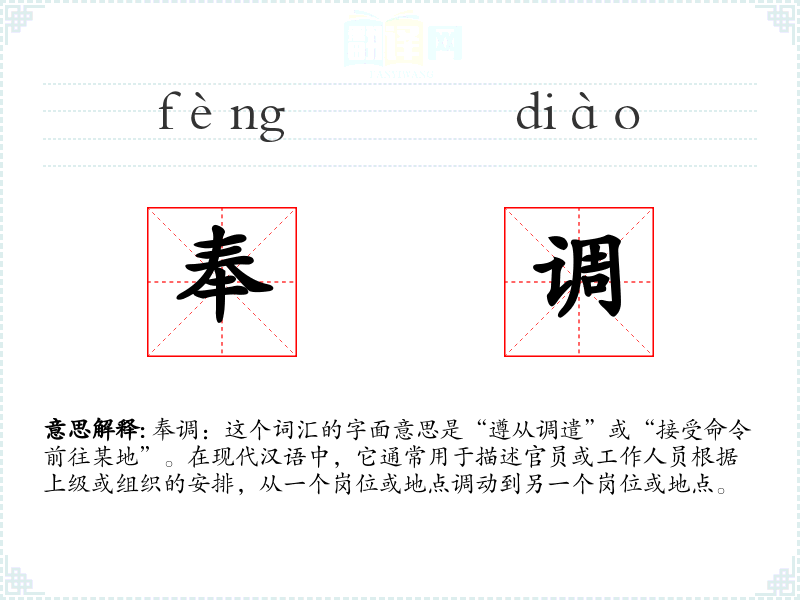 奉调是一个具有深厚文化背景和正式意味的词汇。它在描述工作或职位变动时,传达了一种遵从和正式的感觉。在语言学*和表达中,理解和正确使用这个词汇可以帮助更准确地传达信息,并体现出对正式场合的尊重。
