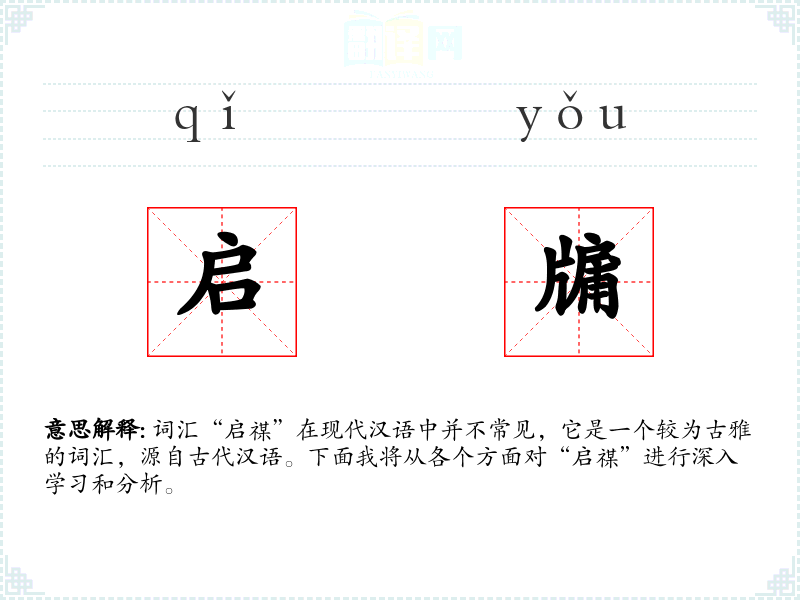 词汇“启禖”在现代汉语中并不常见,它是一个较为古雅的词汇,源自古代汉语。下面我将从各个方面对“启禖”进行深入学习和分析。