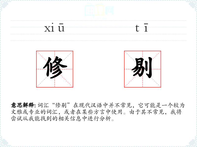词汇“修剔”在现代汉语中并不常见,它可能是一个较为文雅或专业的词汇,或者在某些方言中使用。由于其不常见,我将尝试从我能找到的相关信息中进行分析。