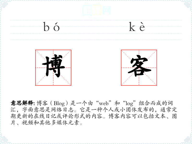 "博客"的意思解释、博客是什么意思由翻译网汉语词典查词提供。