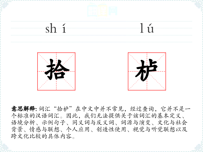 由于“拾栌”不是一个已知的词汇,我们无法从上述角度进行深入学习和分析。如果您有其他词汇或主题需要分析,请提供具体信息,我们将很乐意为您提供详细的学习和分析内容。