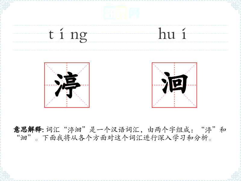 词汇“渟洄”是一个汉语词汇,由两个字组成:“渟”和“洄”。下面我将从各个方面对这个词汇进行深入学*和分析。