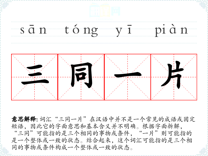 "三同一片"的意思解释、三同一片是什么意思由翻译网汉语词典查词提供。