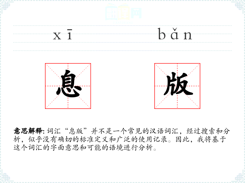 词汇“息版”并不是一个常见的汉语词汇,经过搜索和分析,似乎没有确切的标准定义和广泛的使用记录。因此,我将基于这个词汇的字面意思和可能的语境进行分析。
