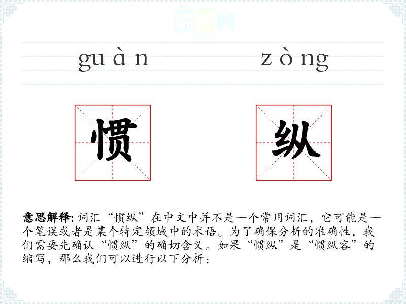 词汇“惯纵”在中文中并不是一个常用词汇,它可能是一个笔误或者是某个特定领域中的术语。为了确保分析的准确性,我们需要先确认“惯纵”的确切含义。如果“惯纵”是“惯纵容”的缩写,那么我们可以进行以下分析: