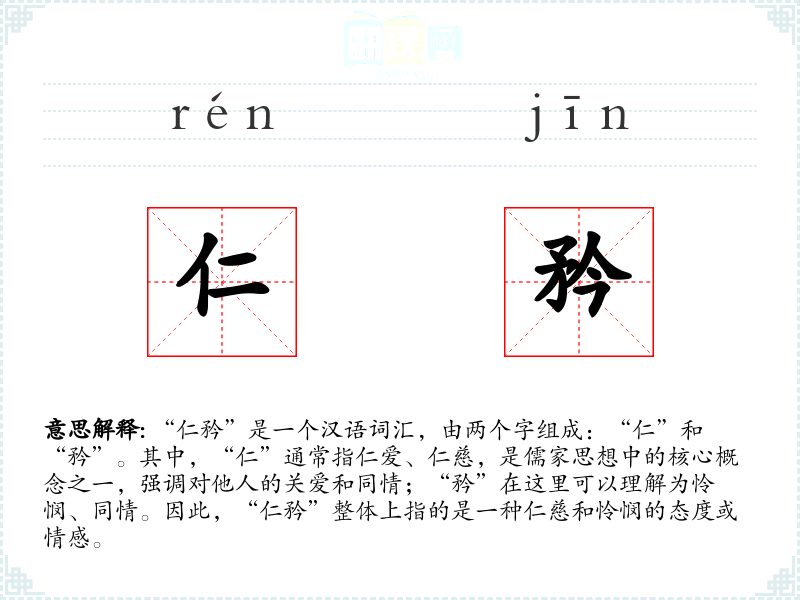 “仁”字源自古代汉字,最初指人与人之间的关系,后来发展为儒家思想中的核心概念。“矜”字古义为怜悯,后来也引申为自大或自夸。在“仁矜”这个词中,“矜”保留了其怜悯的原始意义。