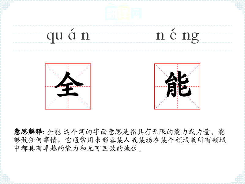 "全能"的意思解释、全能是什么意思由翻译网汉语词典查词提供。