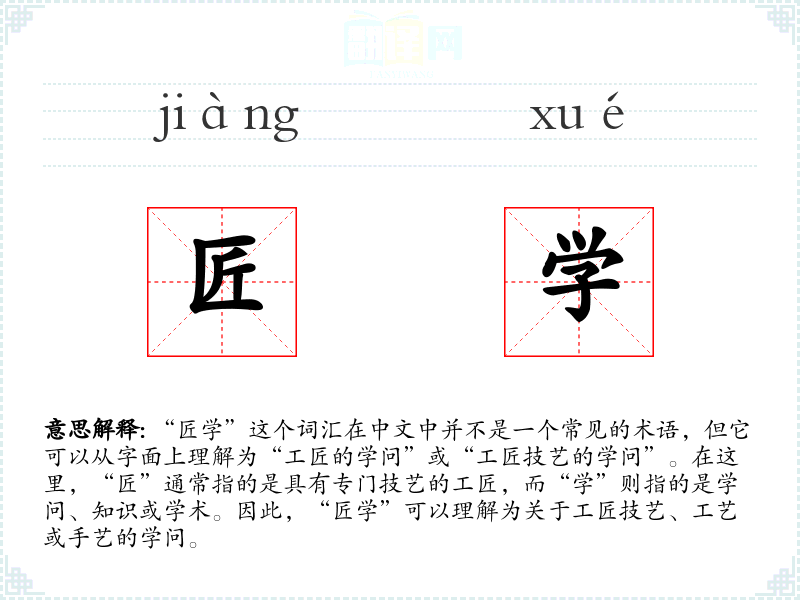 - 专业领域:在工艺美术、设计、建筑等领域,“匠学”可能被用来指代对传统工艺的研究和传承。