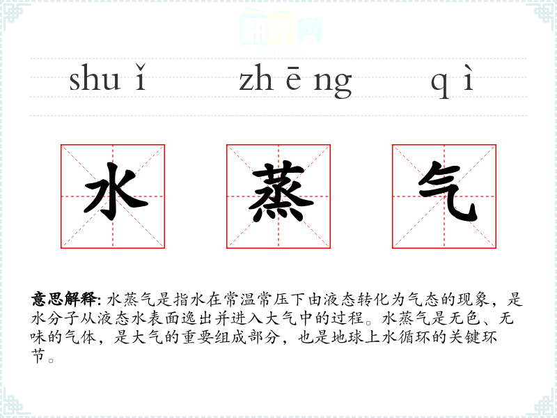 "水蒸气"的意思解释、水蒸气是什么意思由翻译网汉语词典查词提供。