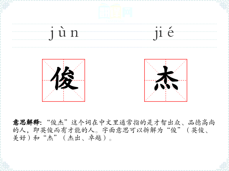 “俊杰”这个词在中文里通常指的是才智出众、品德高尚的人,即英俊而有才能的人。字面意思可以拆解为“俊”(英俊、美好)和“杰”(杰出、卓越)。