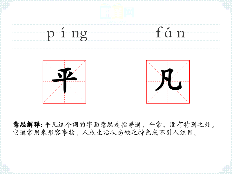 平凡这个词的字面意思是指普通、平常,没有特别之处。它通常用来形容事物、人或生活状态缺乏特色或不引人注目。