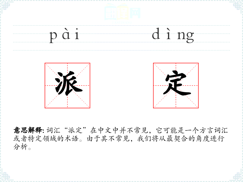 词汇“派定”在中文中并不常见,它可能是一个方言词汇或者特定领域的术语。由于其不常见,我们将从最契合的角度进行分析。