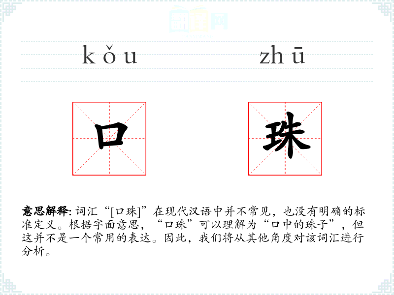 由于“口珠”不是一个标准词汇,我们无法提供一个确切的基本定义。