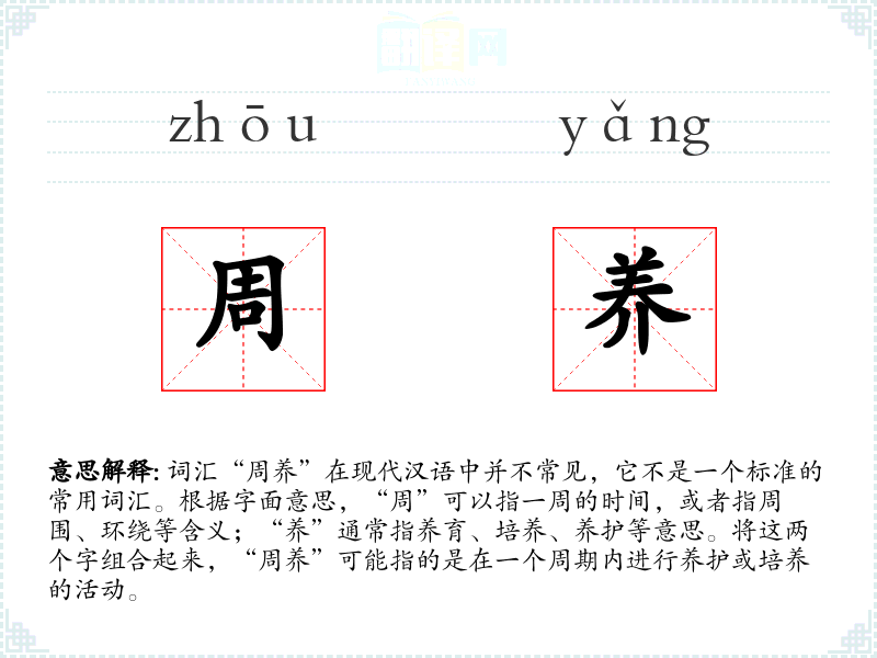"周养"的意思解释、周养是什么意思由翻译网汉语词典查词提供。