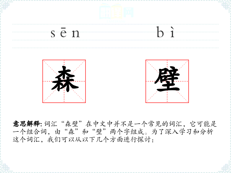 词汇“森壁”在中文中并不是一个常见的词汇,它可能是一个组合词,由“森”和“壁”两个字组成。为了深入学习和分析这个词汇,我们可以从以下几个方面进行探讨: