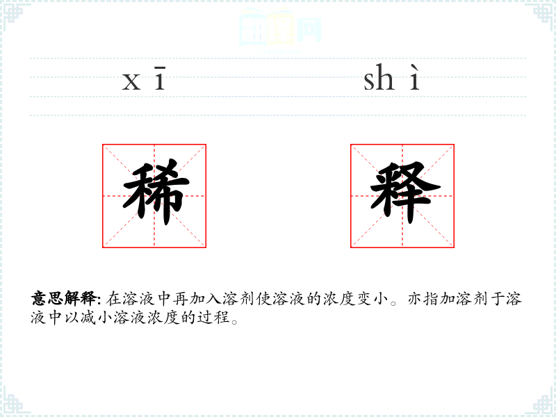 在溶液中再加入溶剂使溶液的浓度变小。亦指加溶剂于溶液中以减小溶液浓度的过程。