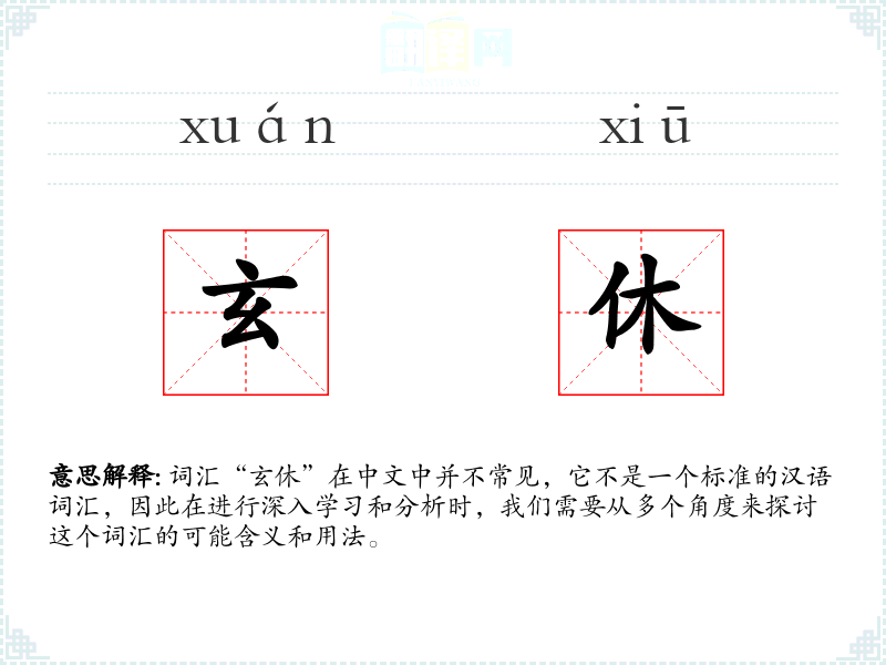 由于“玄休”不是一个标准词汇,我们可以尝试从字面意思来解释: