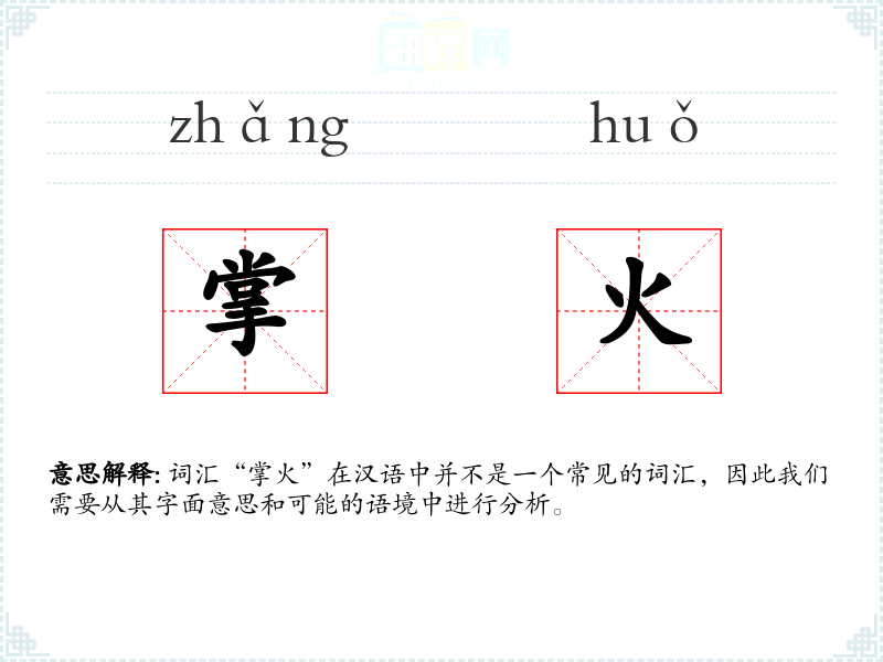 词汇“掌火”在汉语中并不是一个常见的词汇,因此我们需要从其字面意思和可能的语境中进行分析。