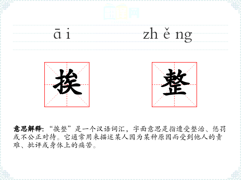 "挨整"的意思解释、挨整是什么意思由翻译网汉语词典查词提供。