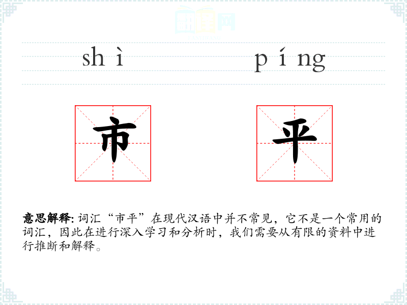 词汇“市平”在现代汉语中并不常见,它不是一个常用的词汇,因此在进行深入学习和分析时,我们需要从有限的资料中进行推断和解释。