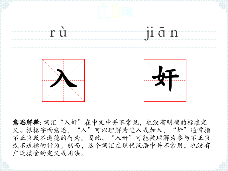 关于词源与演变,由于“入奸”不是一个常用词汇,其历史演变和在语言中的变化并不明确。在古代汉语中,可能存在类似的表达,但具体形式和用法可能有所不同。